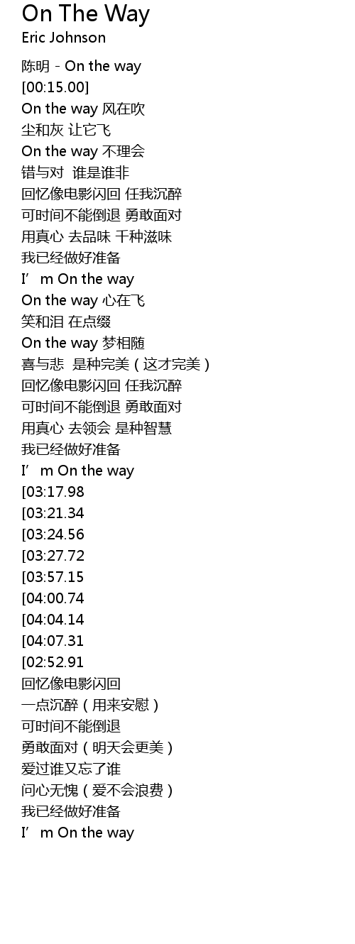 | [00:03.00] | 陈明 - On the way |