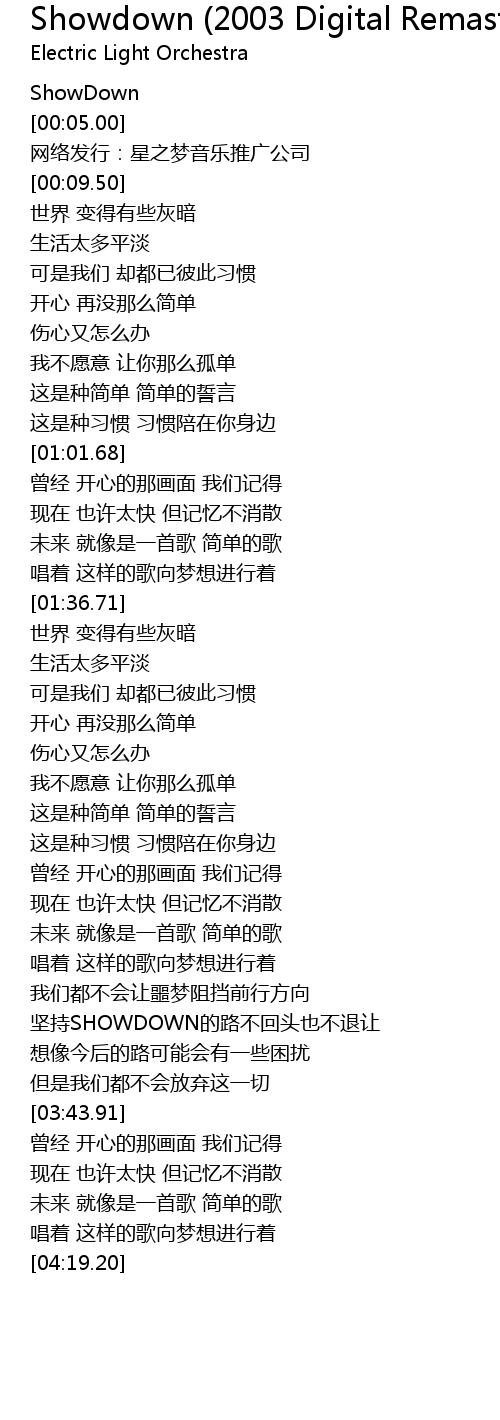 | [03:19.73] | 坚持SHOWDOWN的路不回头也不退让 |