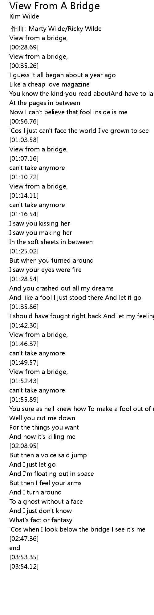 | [00:27.53] | View from a bridge, |