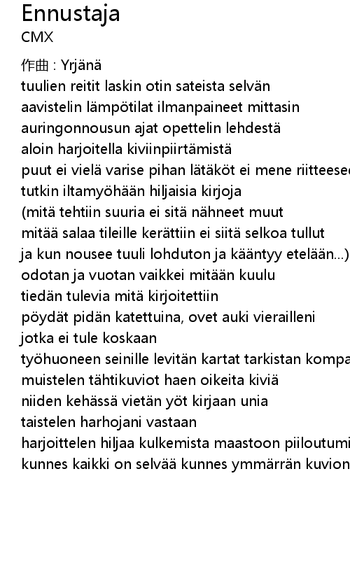 | ja kun nousee tuuli lohduton ja k ntyy etel n... | |