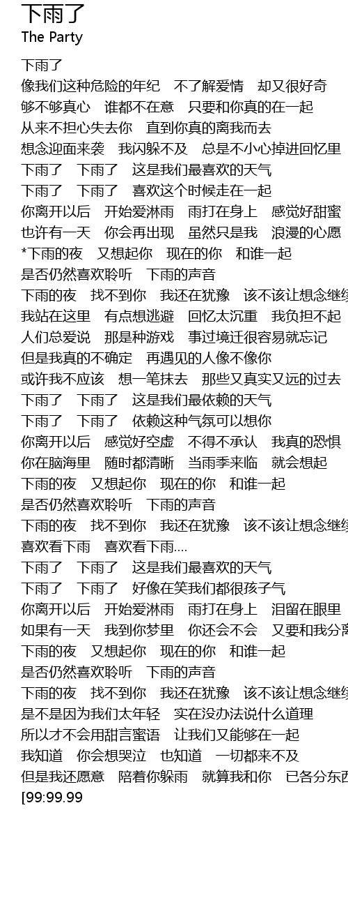 | [03:47.44] | 喜欢看下雨 喜欢看下雨.... |