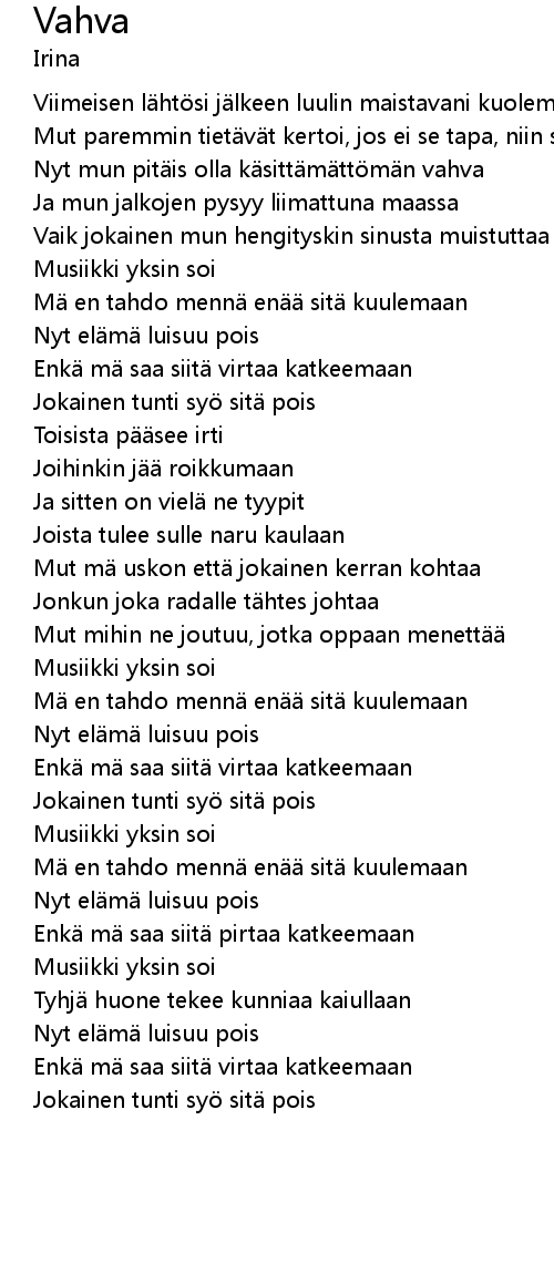 | Nyt mun pit is olla k sitt m tt m n vahva | |