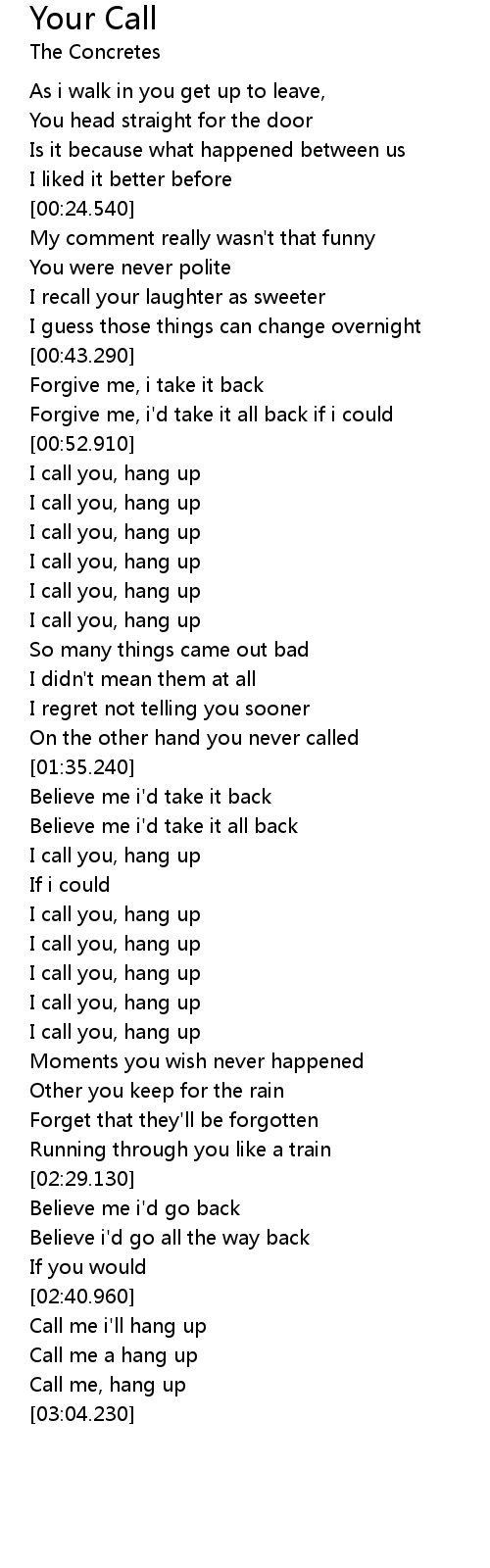 | [02:43.500] | Call me a hang up |