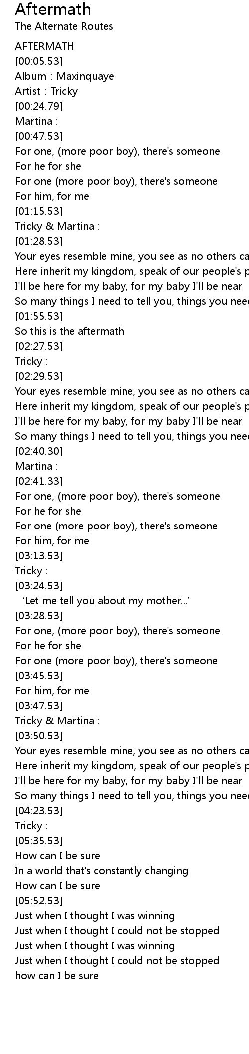 | [00:18.96] | Artist: Tricky |