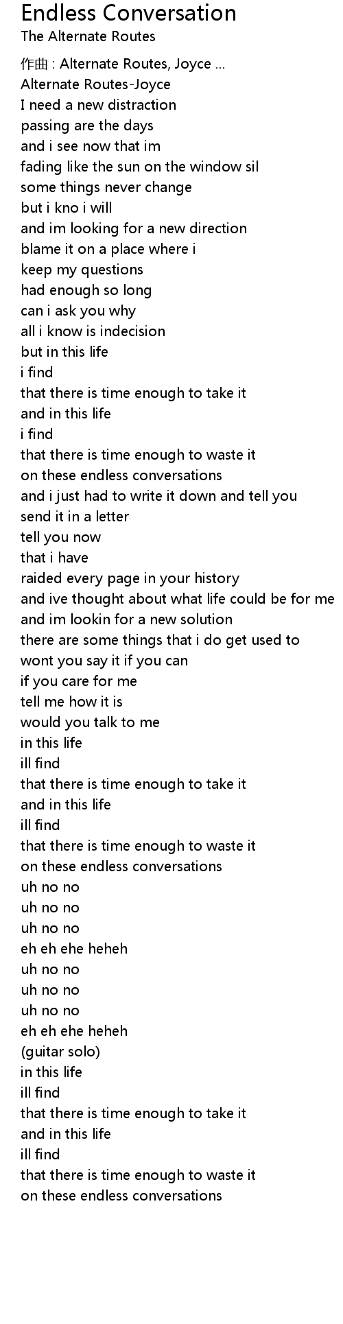| Song | Endless Conversation |