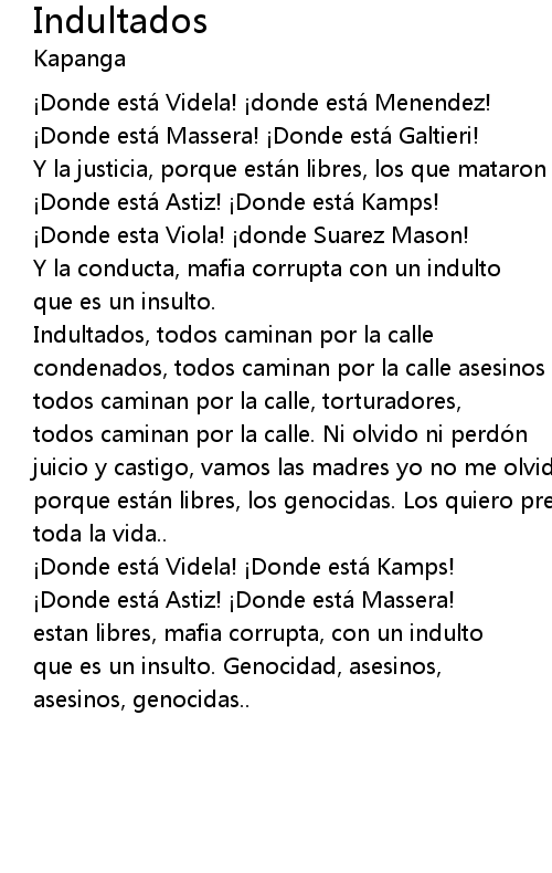 | porque esta n libres, los genocidas. Los quiero presos | |