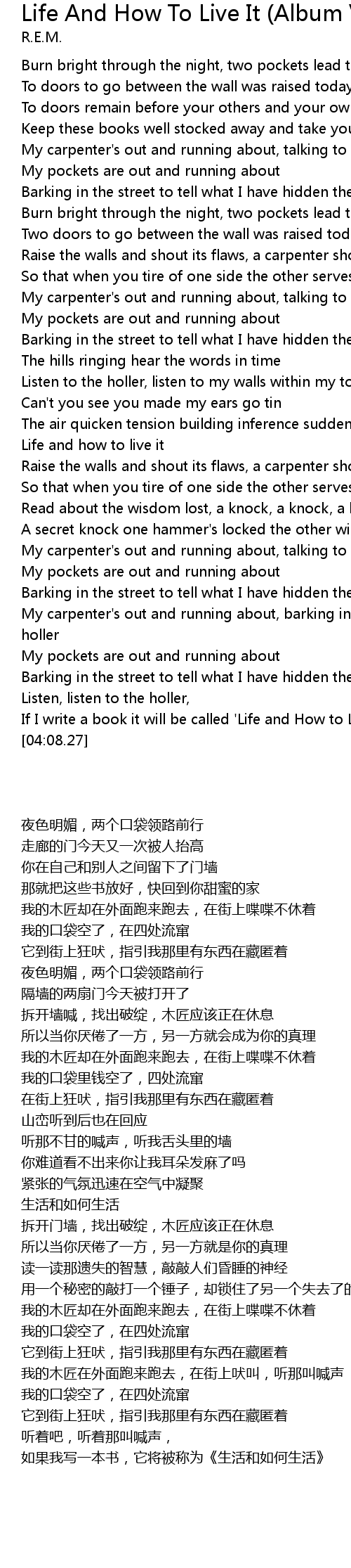 Life And How To Live It (Album Version) Lyrics