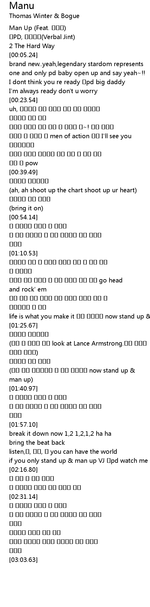 | [00:01.11] | Man Up (Feat. 박미경) |