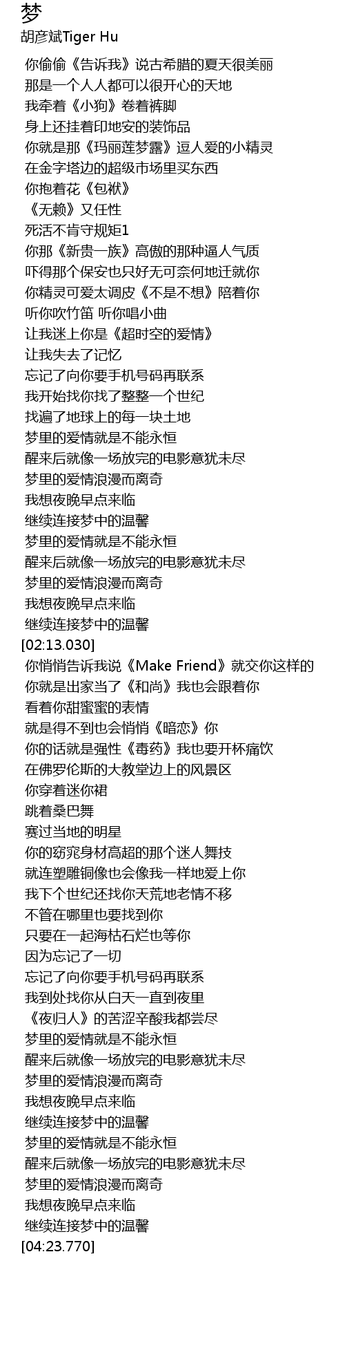 | [03:43.170] | 梦里的爱情浪漫而离奇 |