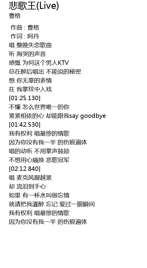 | [01:43.390] | 我有权利 唱最惨的情歌 |