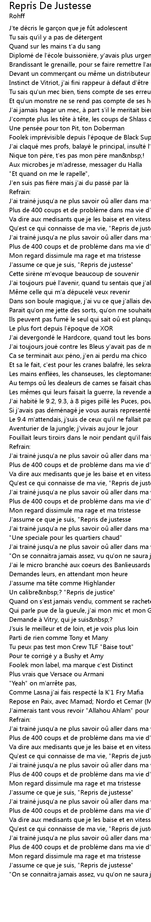 | Song | Repris De Justesse |