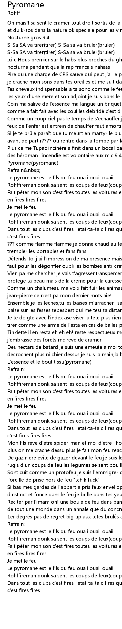 | Le pyromane est le fils du feu ouaii ouaii ouaii | |