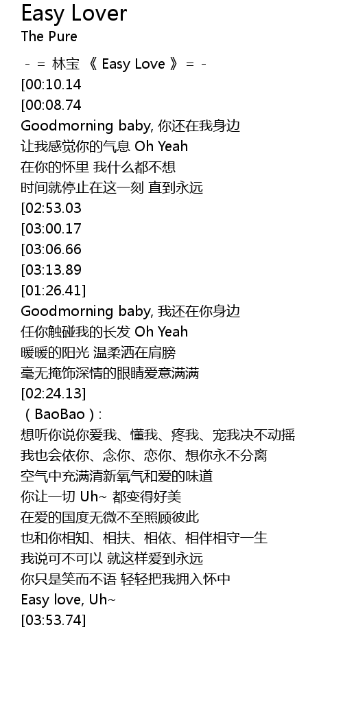 | [00:00.00] | -= 林宝 《 Easy Love 》=- |