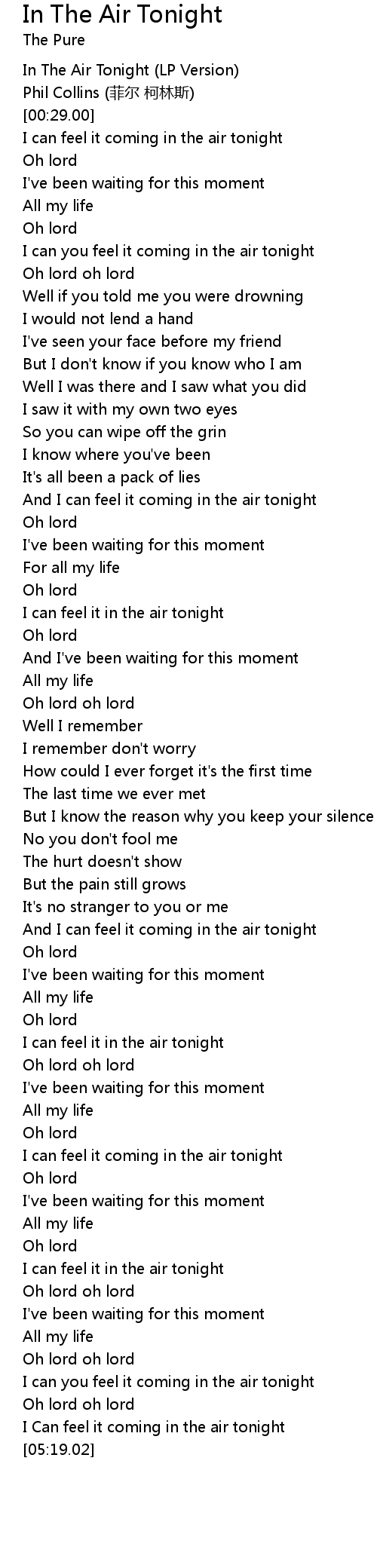 | [00:00.00] | In The Air Tonight (LP Version) |