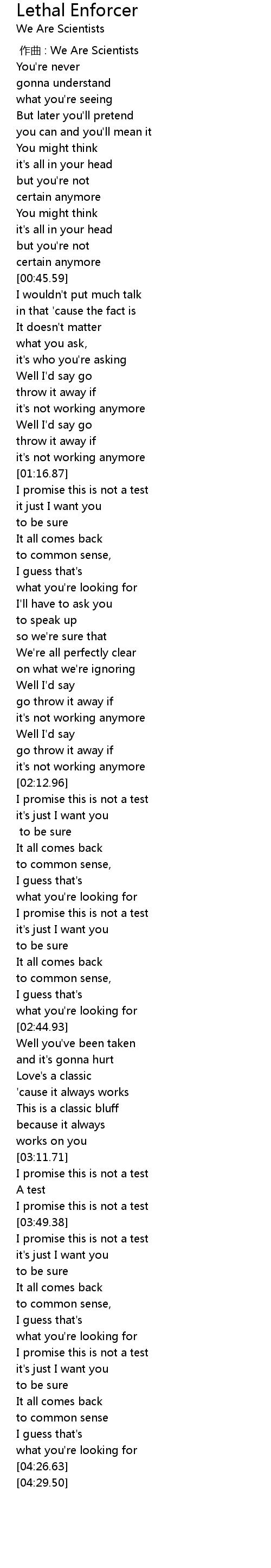 | [00:00.00] | 作曲 : We Are Scientists |
