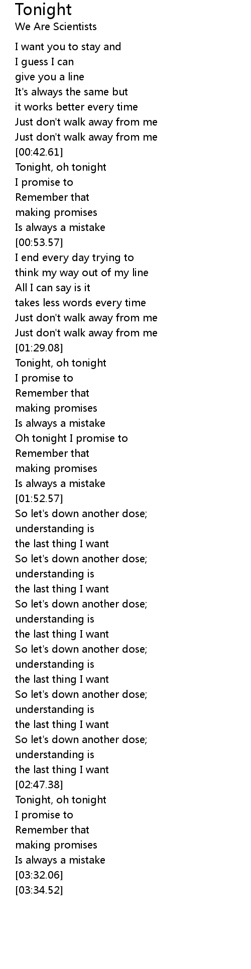 Oh tonight I promise to |