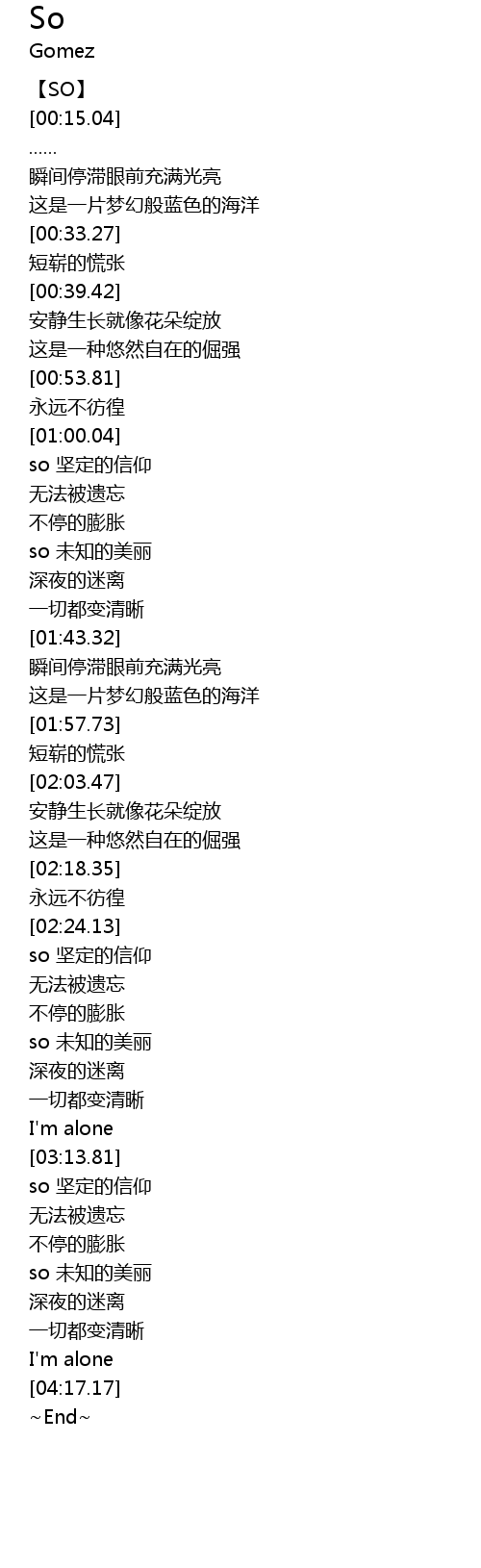 | [04:07.68] | I' m alone |
