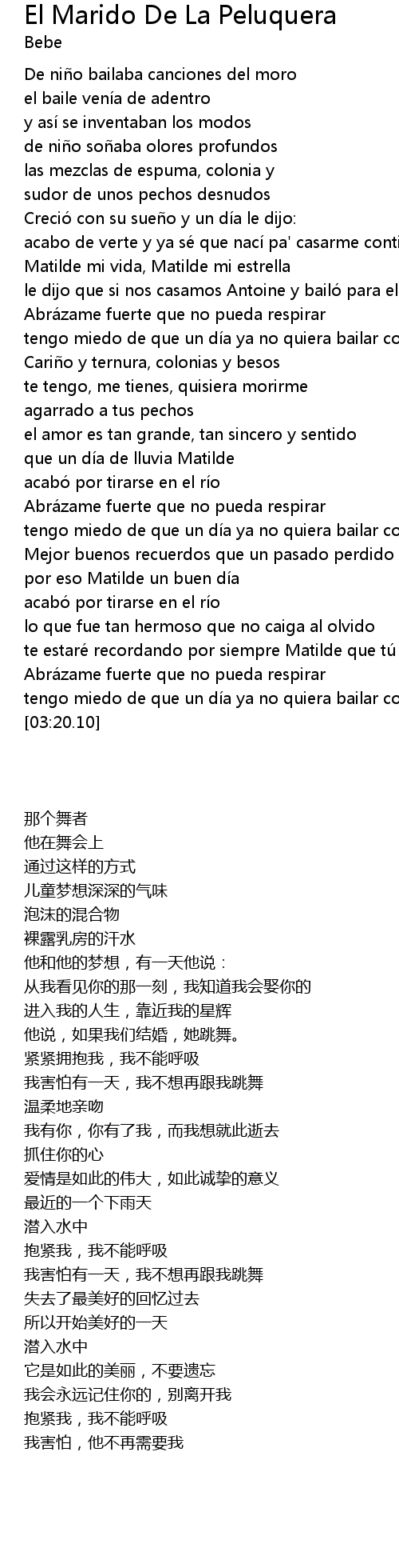 | [03:10.28] | tengo miedo de que un di a ya no quiera bailar conmigo nunca ma s |