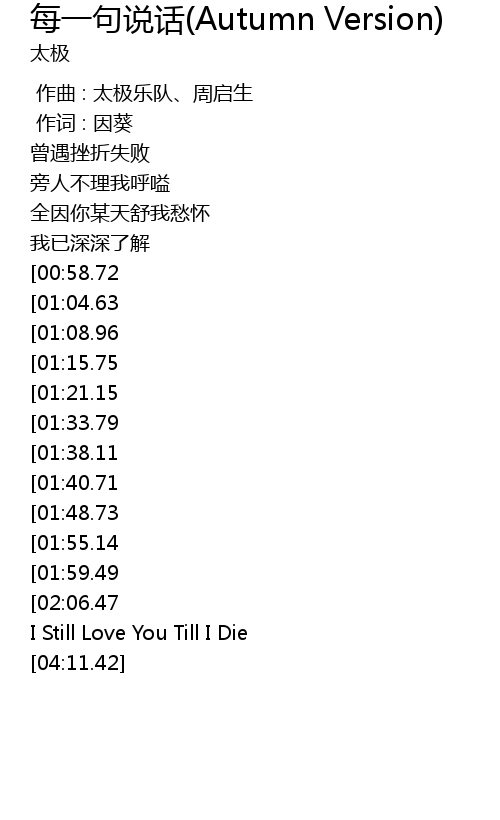 | [00:00.00] | 作曲 : 太极乐队、周启生 |