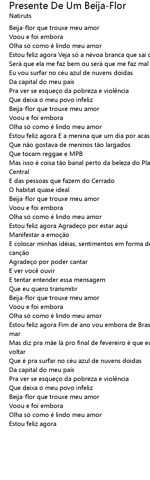 | Song | Presente De Um Beija-Flor |