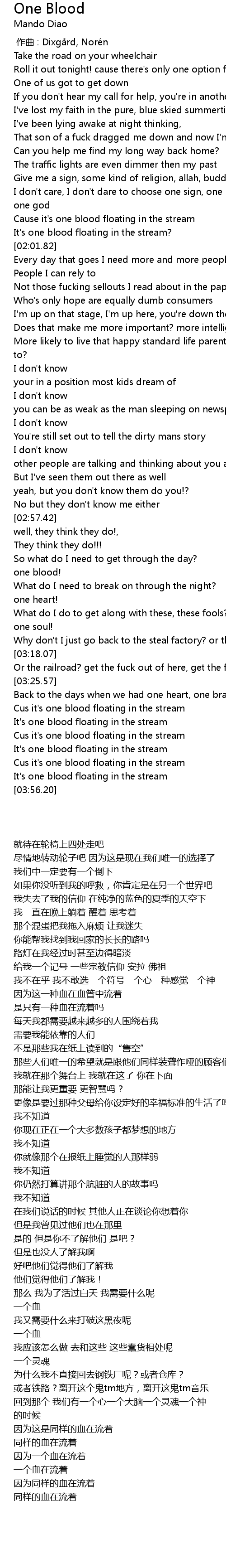 | [03:31.01] | Cus it's one blood floating in the stream |