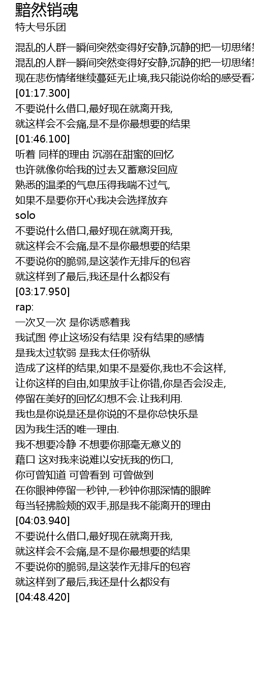 | [03:22.950] | wo shi tu ting zhi zhe chang mei you jie guo mei you jie guo de gan qing shi wo tai guo ruan ruo shi wo tai ren ni jiao zong |