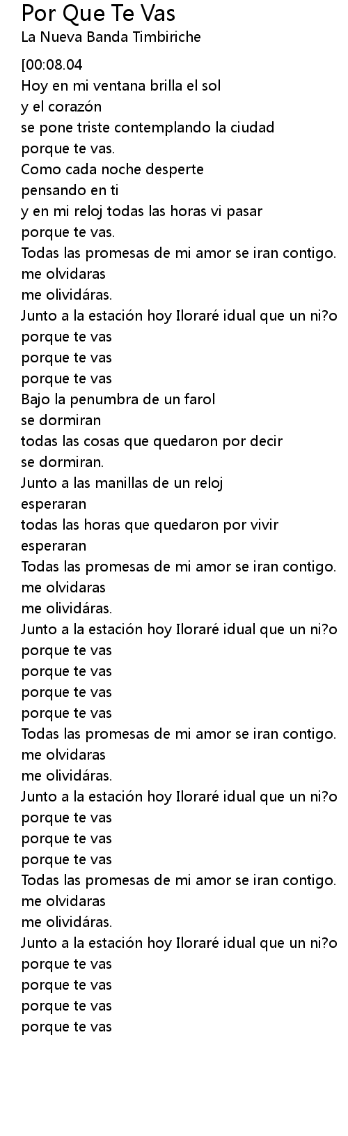 | [00:44.79] | Todas las promesas de mi amor se iran contigo. |