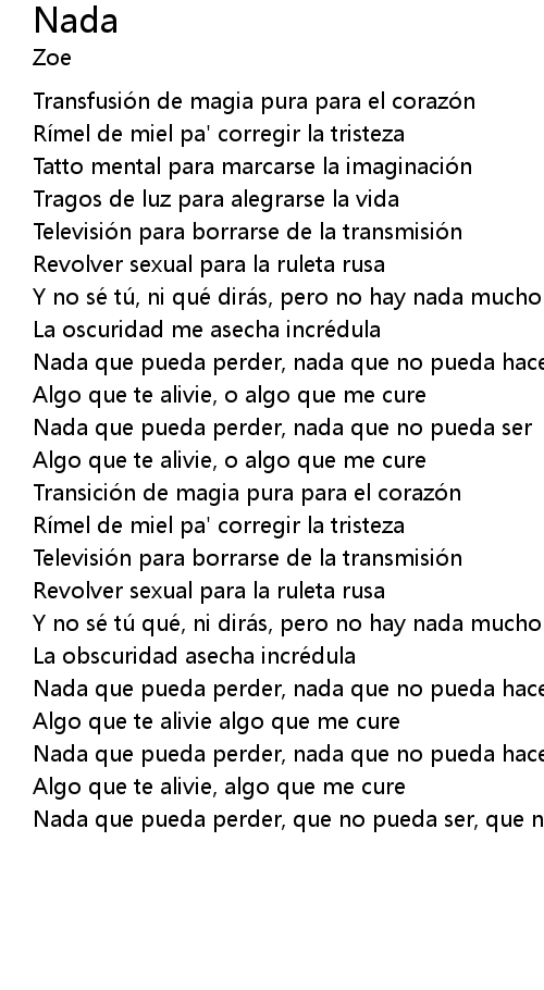 | Nada que pueda perder, que no pueda ser, que no pueda amar, que pueda so ar |