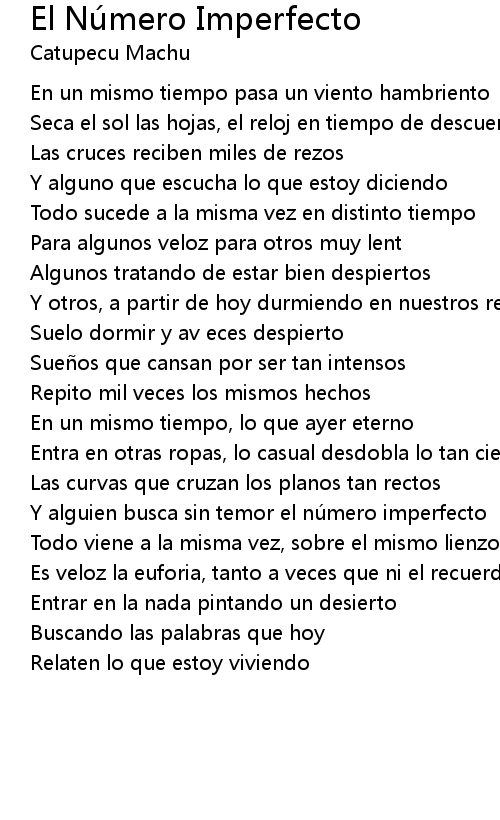 | Y alguien busca sin temor el nu mero imperfecto | |