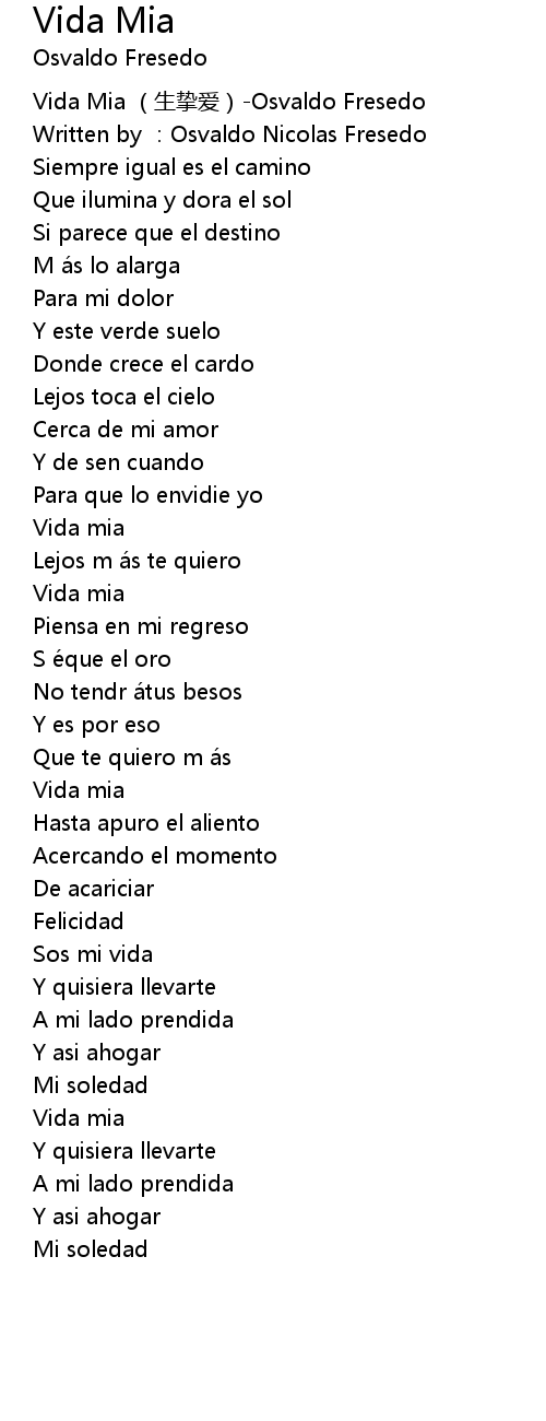| [00:00.00] | Vida Mia sheng zhi ai Osvaldo Fresedo |