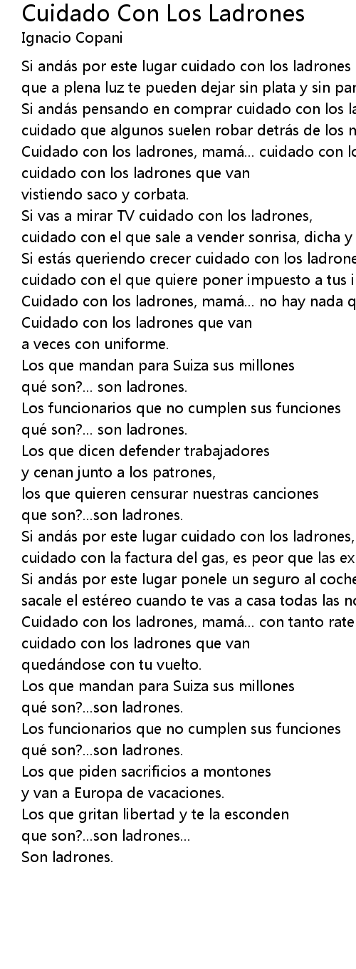 | Cuidado con los ladrones, mama... con tanto ratero suelto, | |
