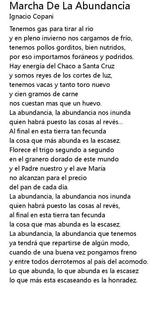 | Song | Marcha De La Abundancia |