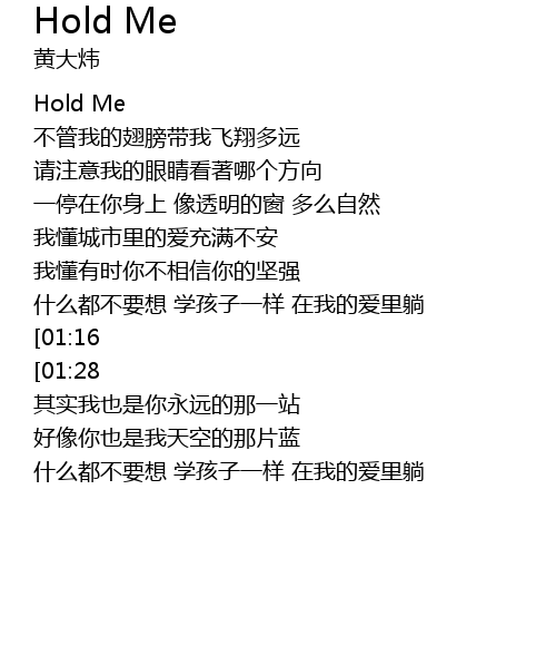 | [02:27][01:28] | Hold Me shēn hū xī zhàn lǐng wǒ de shì nǐ |