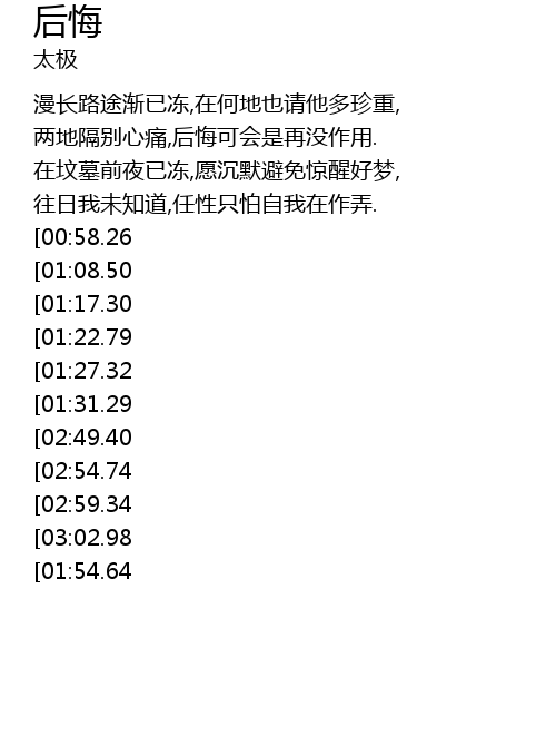 | [00:31.31] | liǎng dì gé bié xīn tòng, hòu huǐ kě huì shì zài méi zuò yòng. |