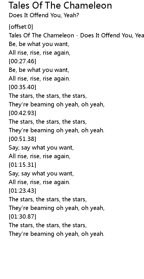 [00:01.06] Tales Of The Chameleon - Does It Offend You, Yeah