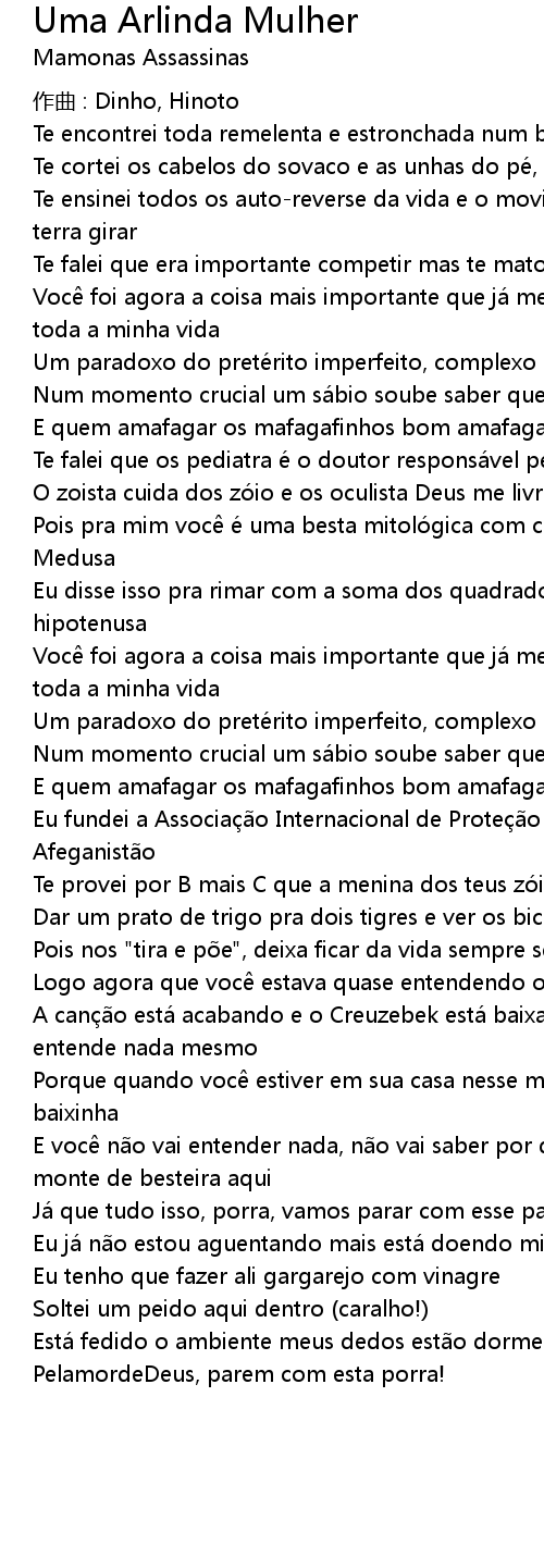 | Te cortei os cabelos do sovaco e as unhas do pé, te chamei de querida | |