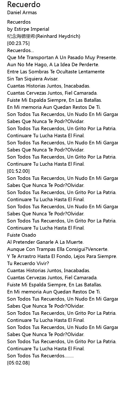 | [02:52.00] | Son Todos Tus Recuerdos, Un Grito Por La Patria. |