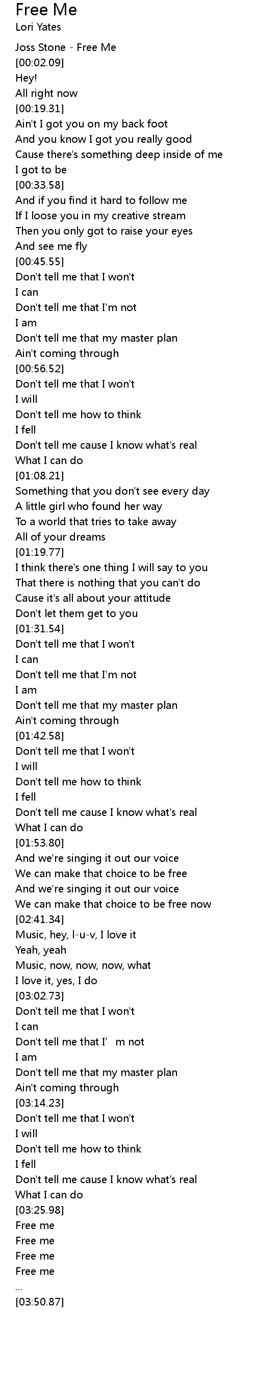| [00:00.66] | Joss Stone - Free Me |