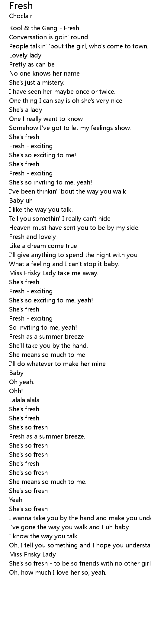 | [03:18.69] | She's so fresh - to be so friends with no other girl than lady. |