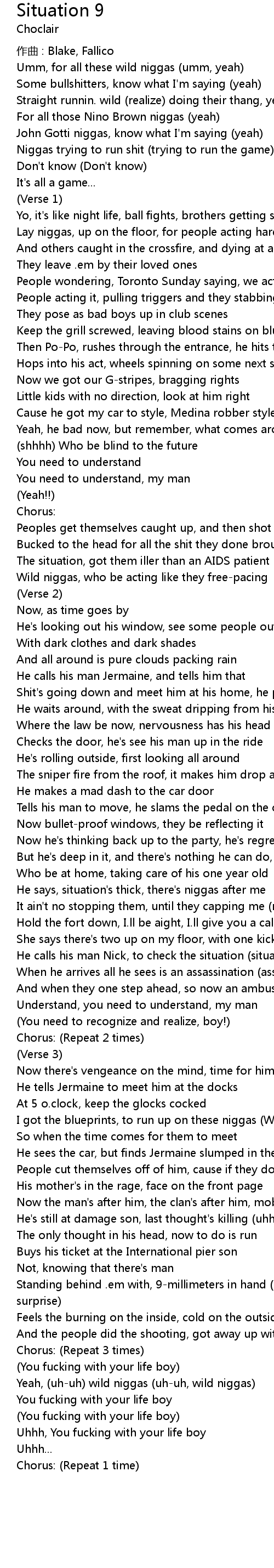 | He says, situation' s thick, there' s niggas after me | |