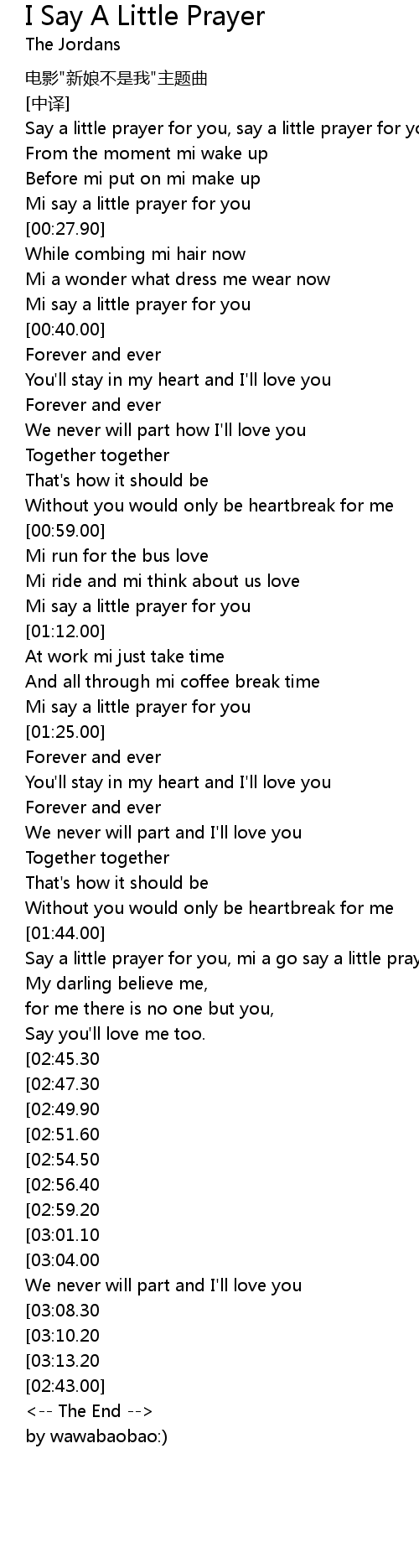 | [00:36.80] | Mi say a little prayer for you |