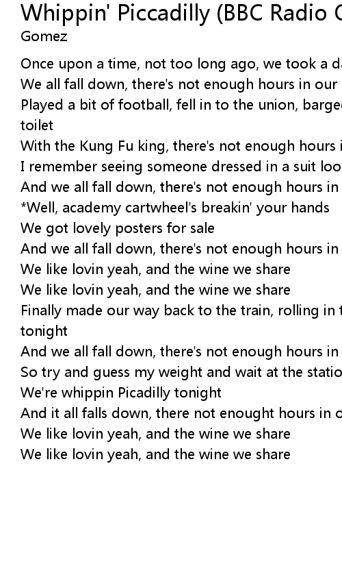 We're whippin Picadilly tonight |