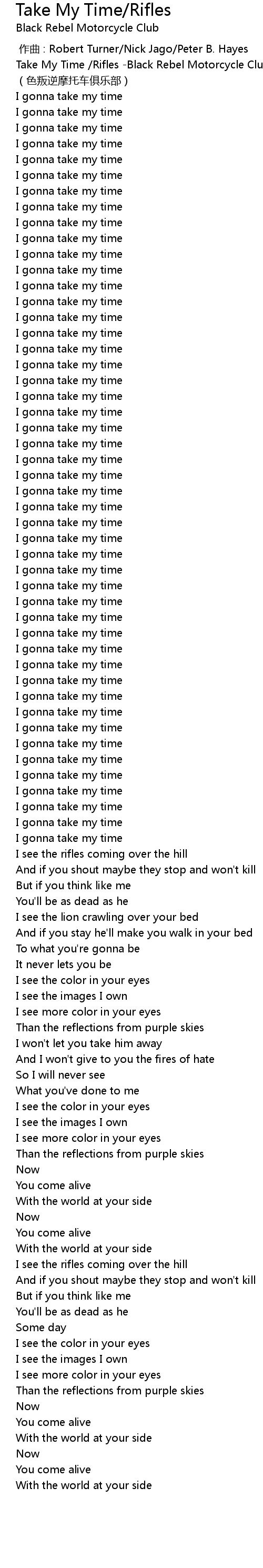 | [00:00.00] | Take My Time Rifles Black Rebel Motorcycle Club se pan ni mo tuo che ju le bu |