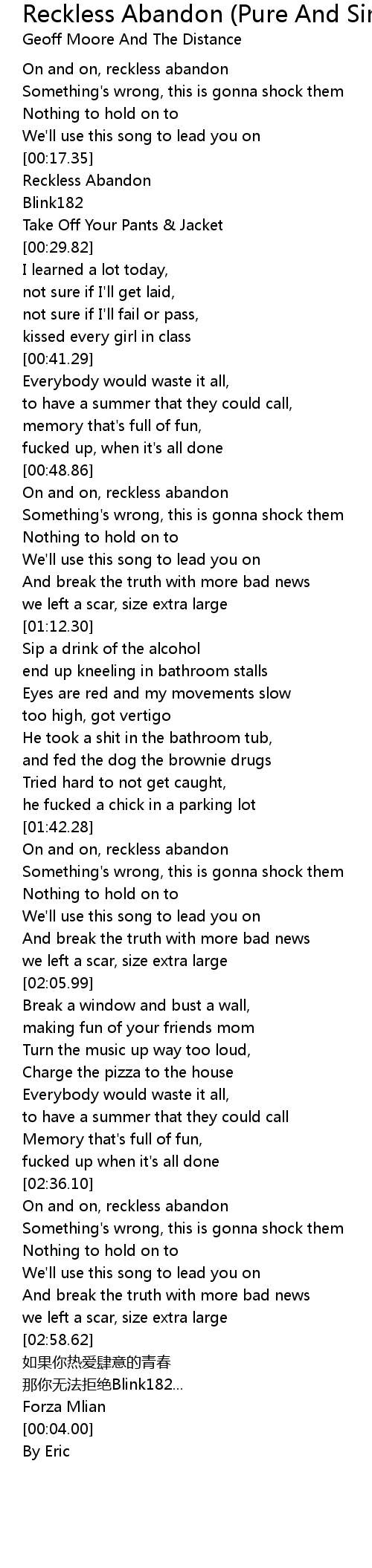 | Song | Reckless Abandon (Pure And Simple Album Version) |