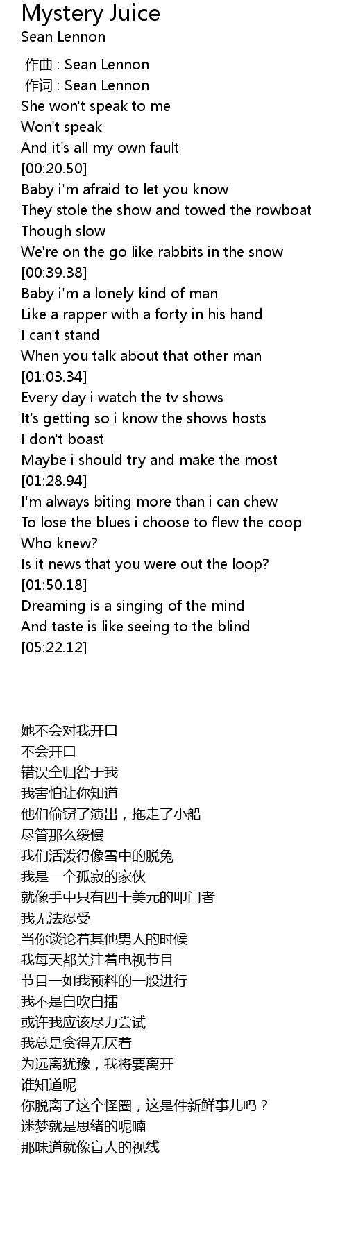 | [00:00.00] | zuò qǔ : Sean Lennon |