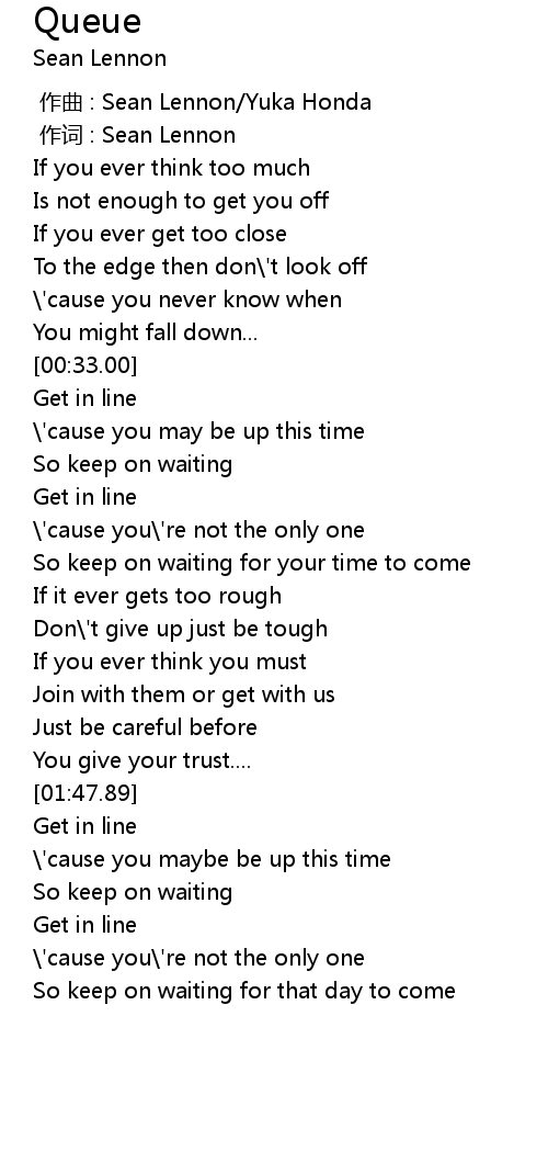 | [00:01.00] | 作词 : Sean Lennon |