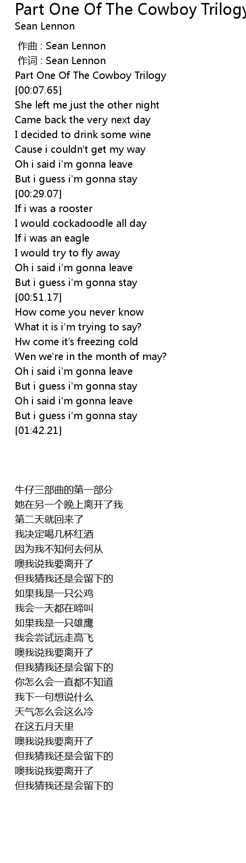 | [00:03.88] | Part One Of The Cowboy Trilogy |