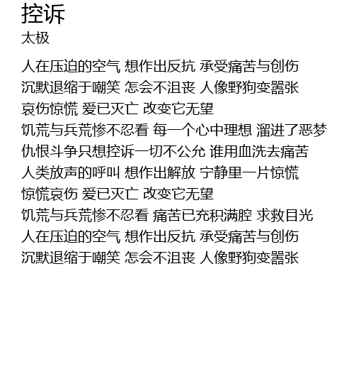 | [02:42.500] | 人在压迫的空气 想作出反抗 承受痛苦与创伤 |