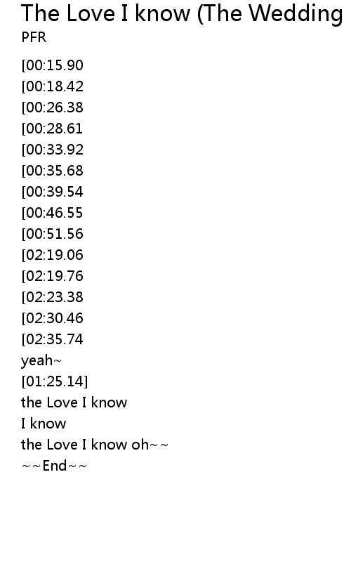 The Love I know (The Wedding Collection Album Version) Lyrics