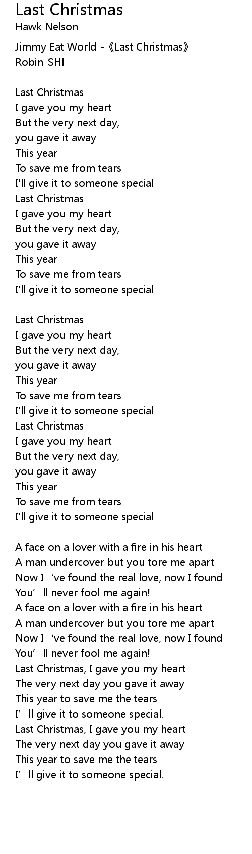 | Last Christmas, I gave you my heart | |
